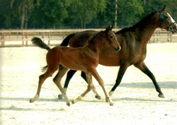 | Tante Polly, leistungsgeprüft Vater: Colander Holsteiner Stutenstamm 1020 Mit Fohlen bei Fuß und tragend von Cassito |
